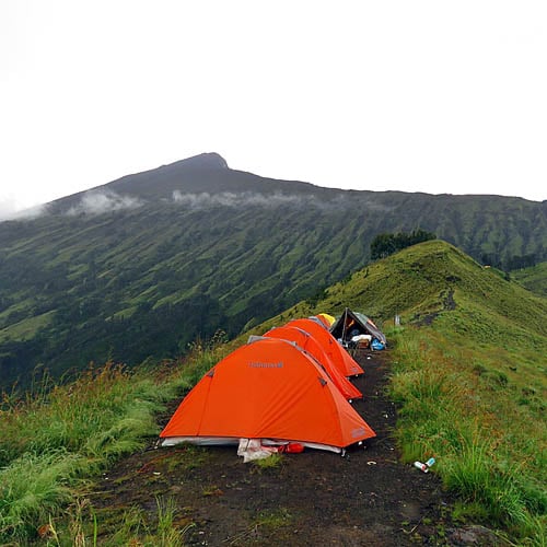 After breakfast, then start our trek with a gentle ascent through open grassland to Pos 1 Pemantauan (1,300m asl), rest and enjoy the summit views of Mt. Rinjani. Continue our climb towards Pos 2 Tengengean (1,500 m) about 1 hour walk from Pos 1 Pemantuan then another 1.5 hour trek to Pos 3 Pada Balong (1,800 m) for lunch. After Lunch then continuing the trek up to Sembalun Crater Rim (2,639m), this is the 3.5 hour hard climb amongst the pine-like Casuarina species locally known as Cemara, with the opportunity to spot wild pigs and the long-tailed grey macaque. Reach the camp site of Plawangan II (approx 17:00), set up the tent and enjoy the views of the crater rim. Dinner served at the camp site, rest and prepare for an early wake up for the trek to the Summit on the following day.